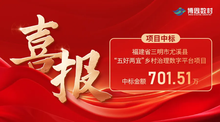 12月16日,博思软件集团旗下福建省数村科技发展有限公司(简称:数村科技)成功中标福建省尤溪县“五好两宜”乡村治理数字平台项目,中标金额为701.51万元。该项目为2025年财政部“五好两宜”和美乡村试点试验项目,是公司在国家级农村综合性改革试点试验项目领域落地的第13个项目。